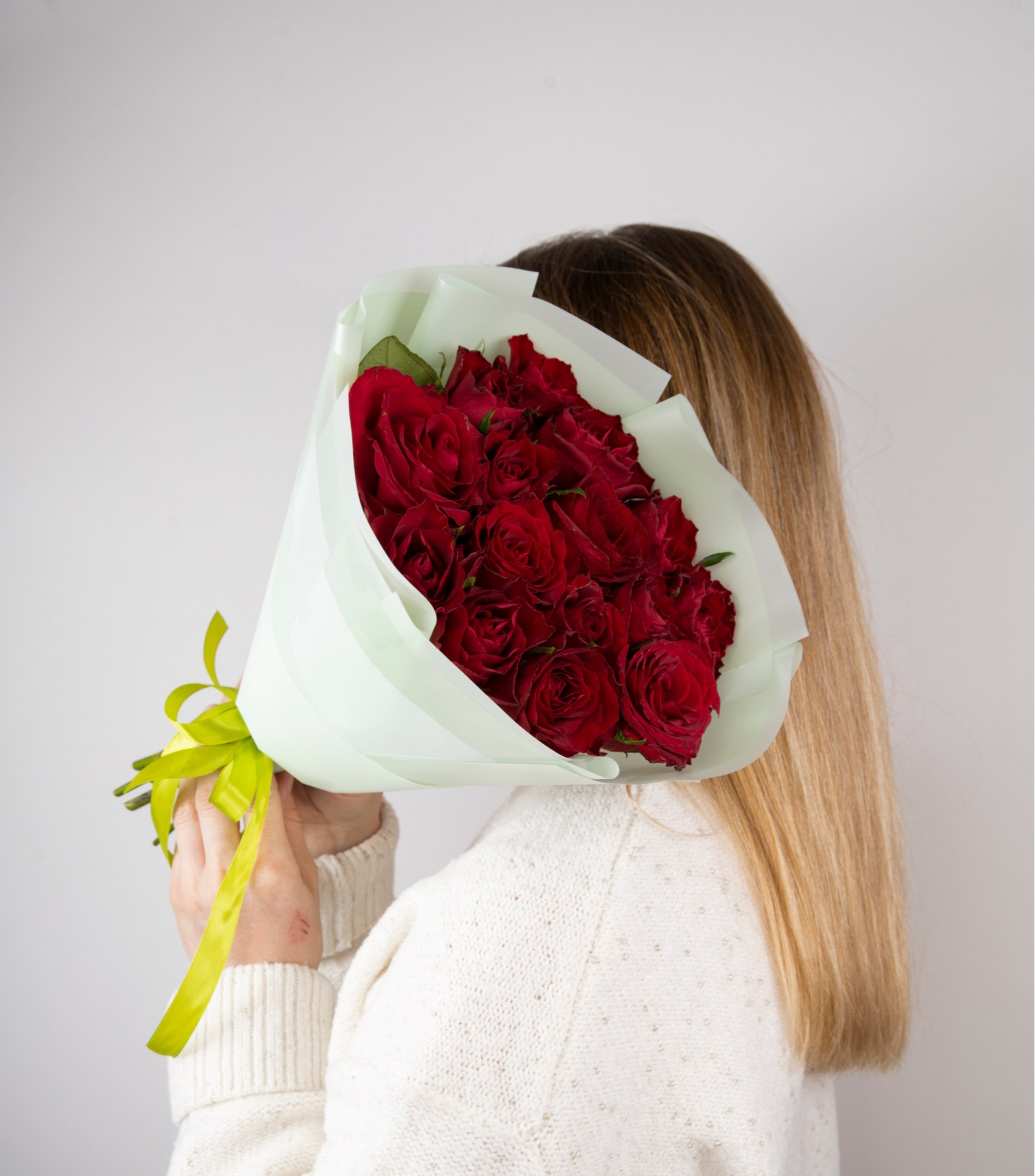 Букет из красной букетной розы собирается из цветов со свежей поставки, поэтому, при правильном уходе, может радовать получателя до 2х недель!