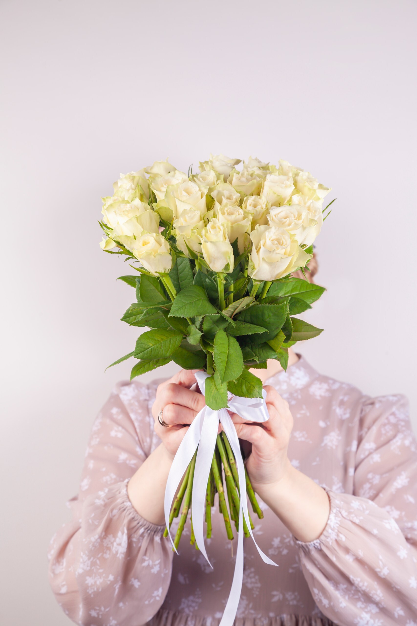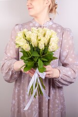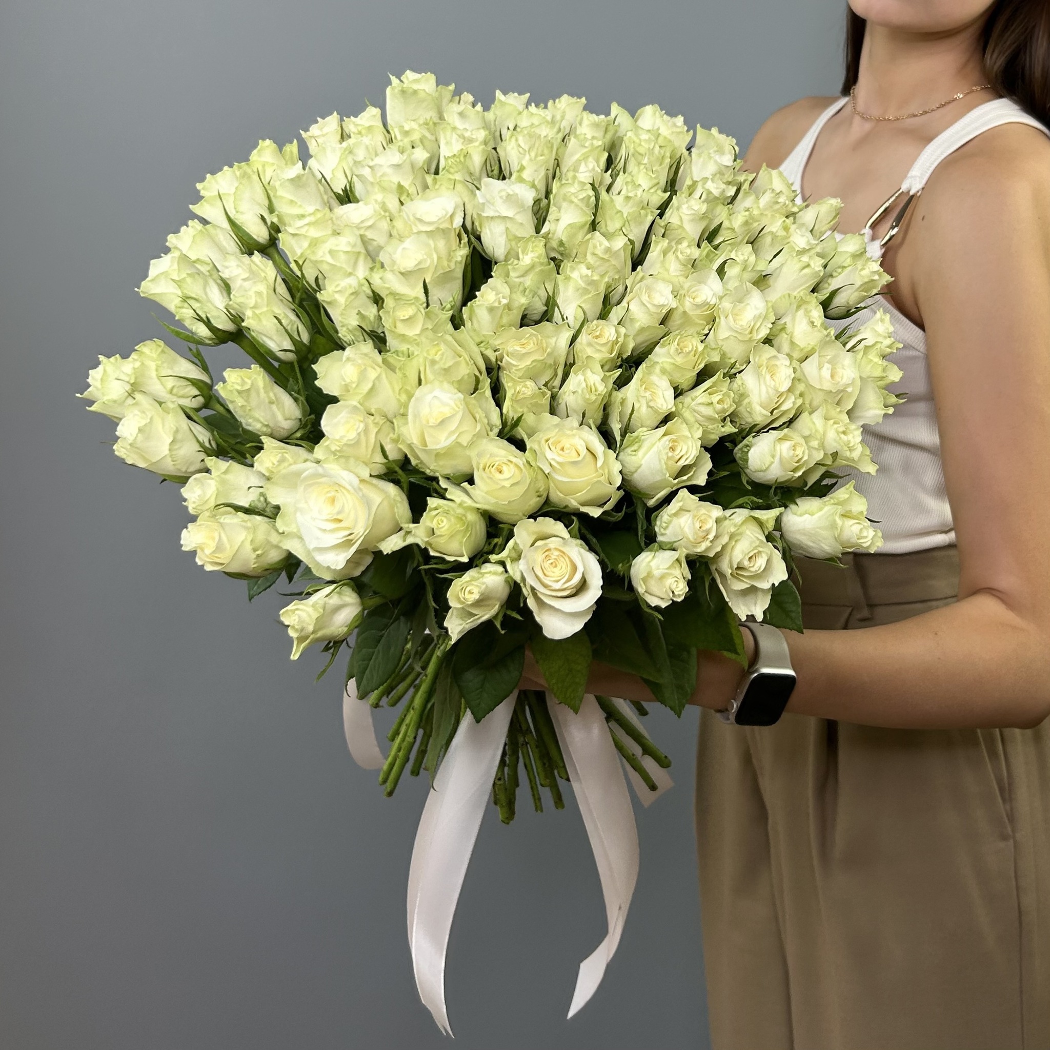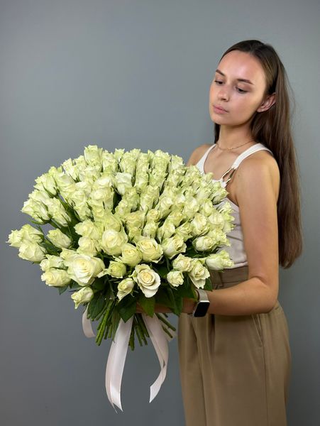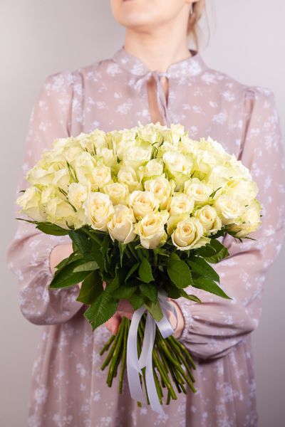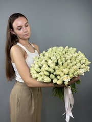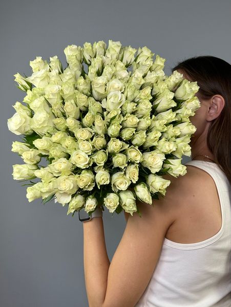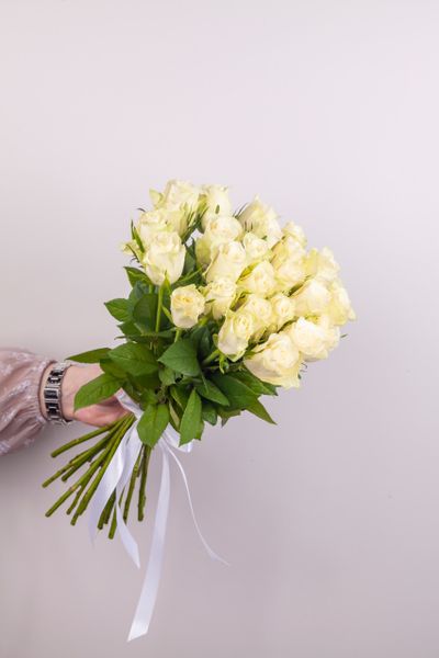 Букет из белой букетной розы собирается из цветов со свежей поставки, поэтому, при правильном уходе, может радовать получателя до 2х недель!