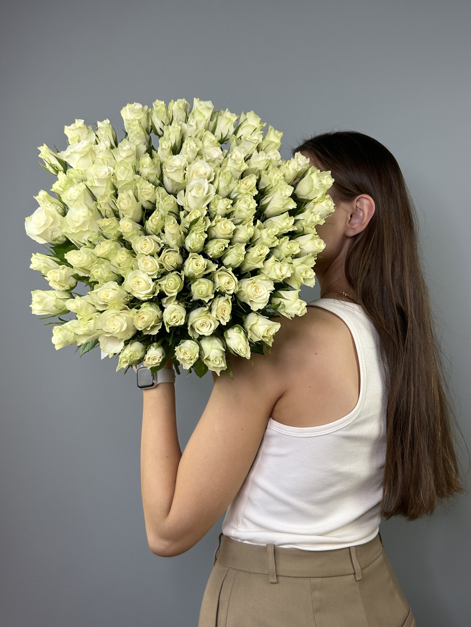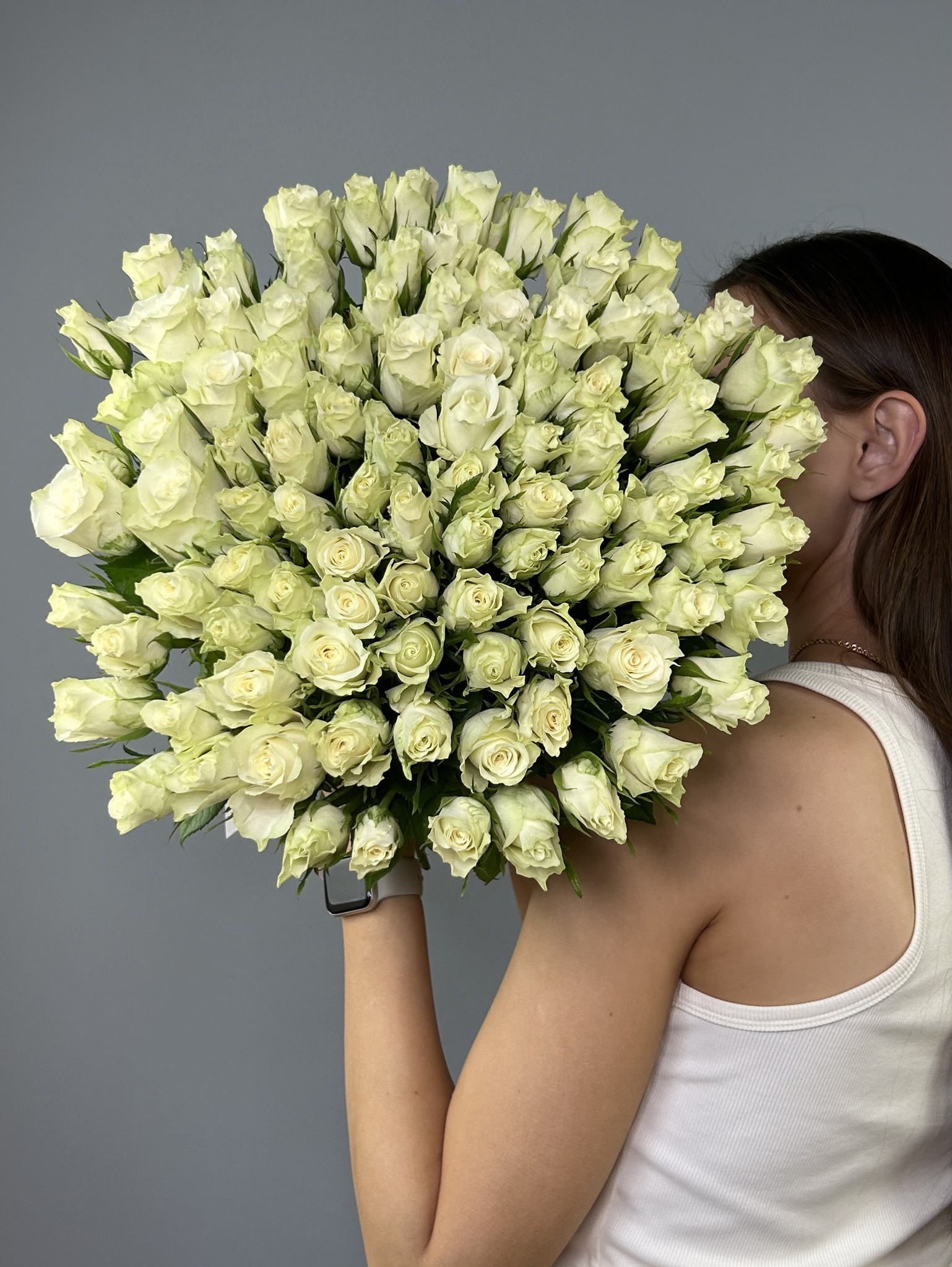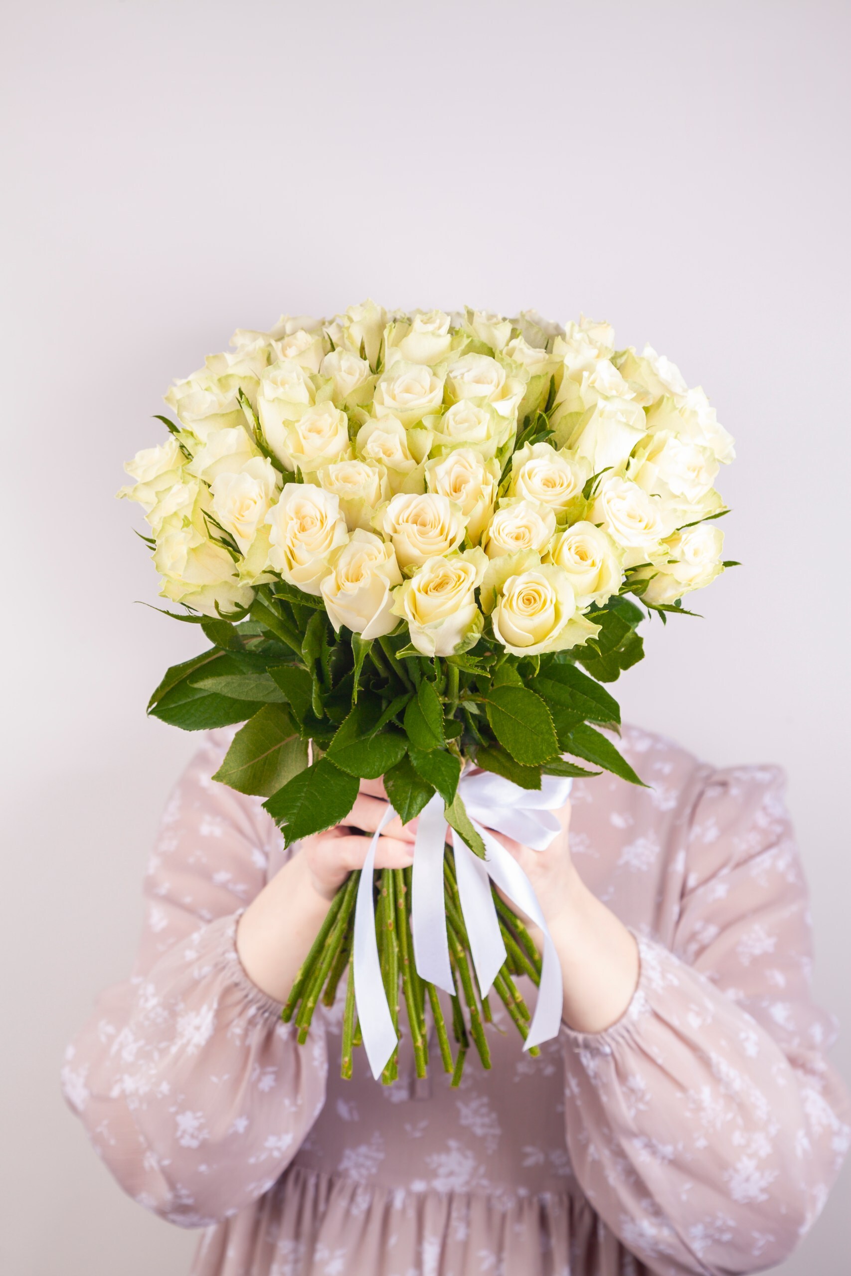 Букет из белой букетной розы собирается из цветов со свежей поставки, поэтому, при правильном уходе, может радовать получателя до 2х недель!