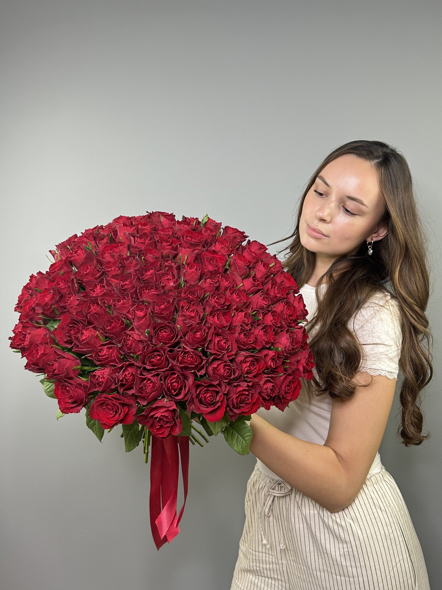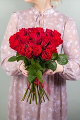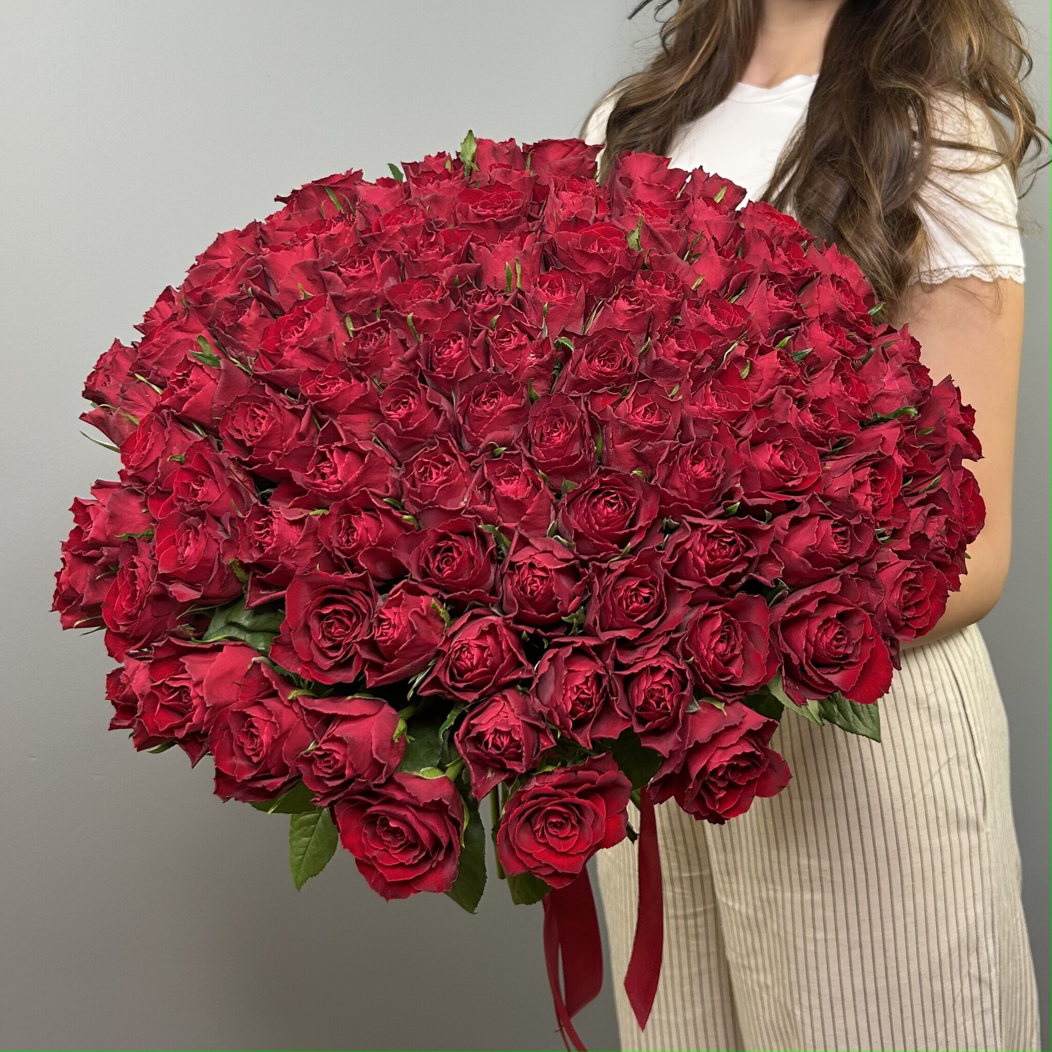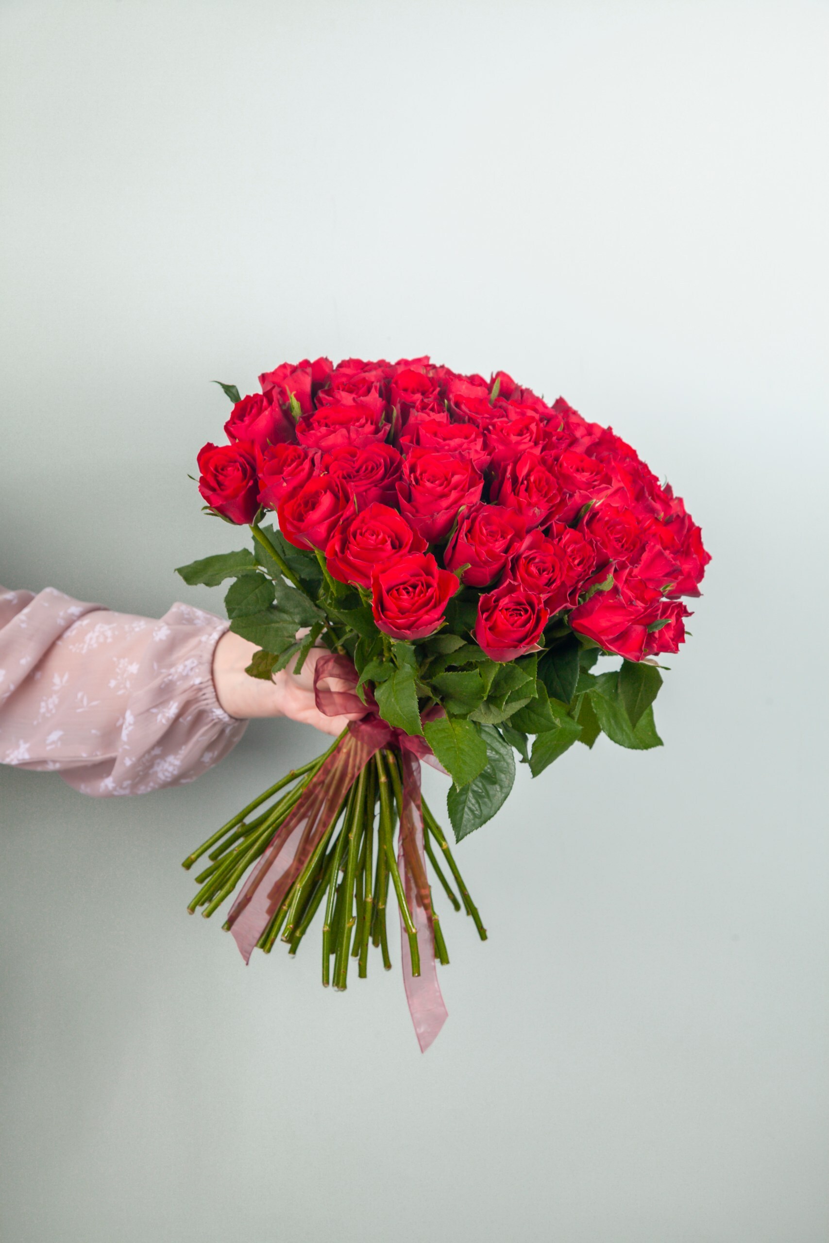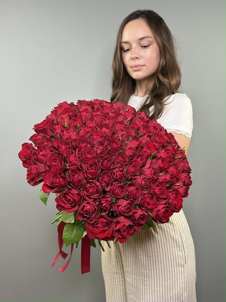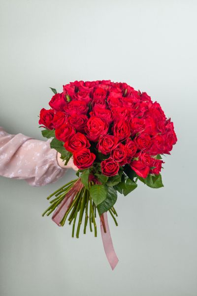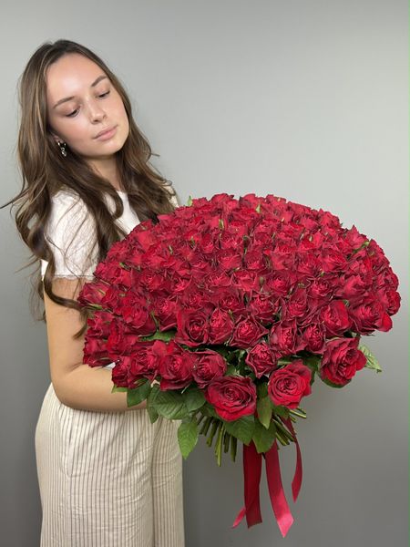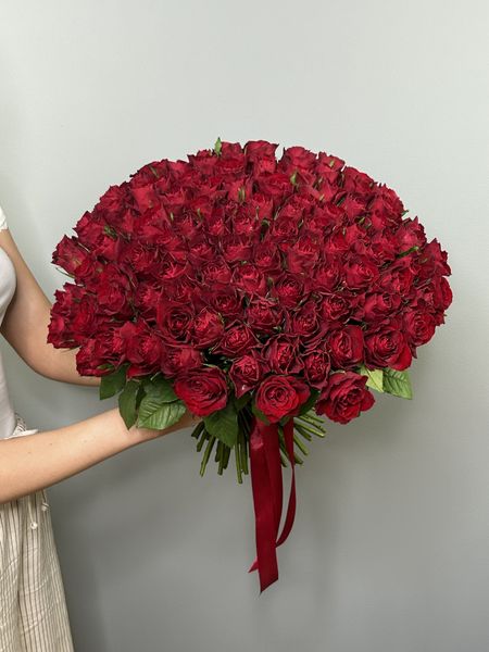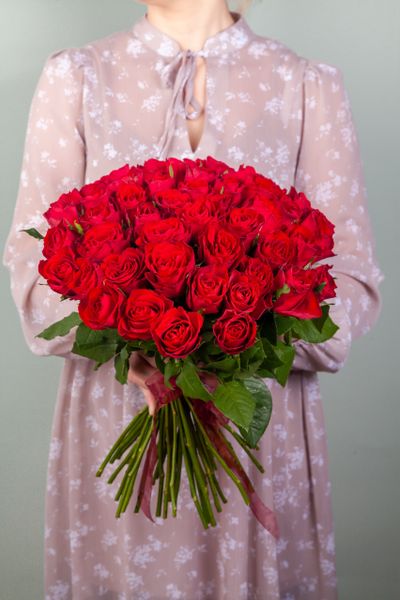 Букет из красной букетной розы собирается из цветов со свежей поставки, поэтому, при правильном уходе, может радовать получателя до 2х недель!