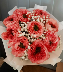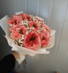 Букет из нежных пионовидных роз с гипсофилой