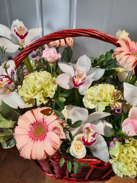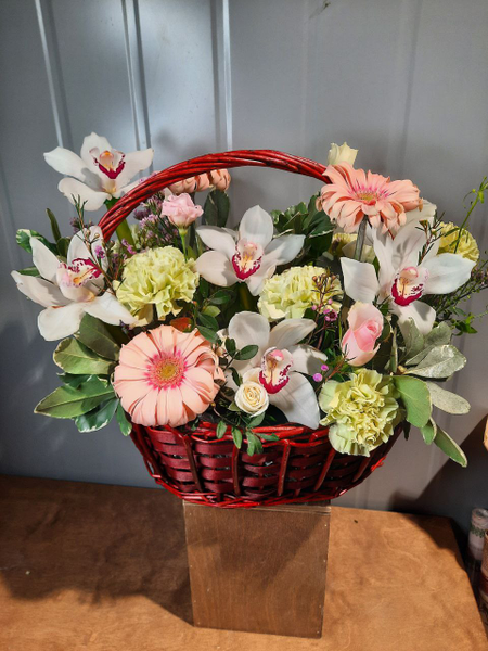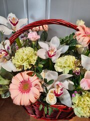 Композиция в корзине с цимбидиумом
