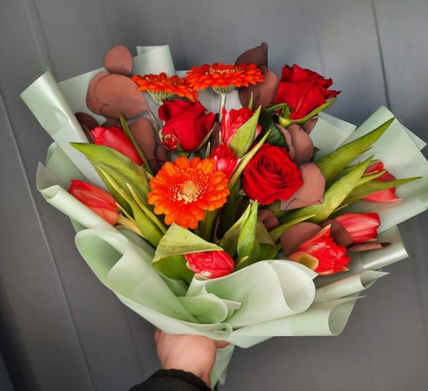 Яркий букет с тюльпанами