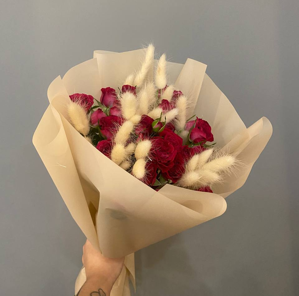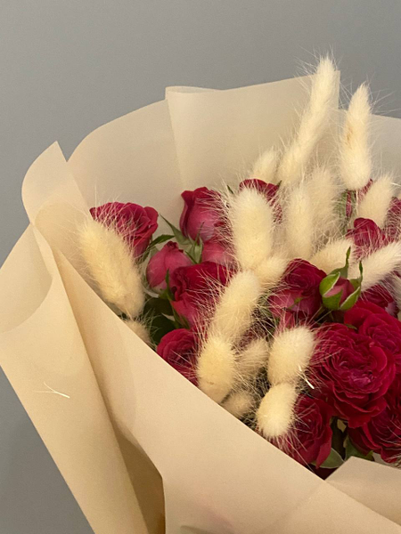 Букет из кустовых роз "Черри Блоссомс" с лагурусом