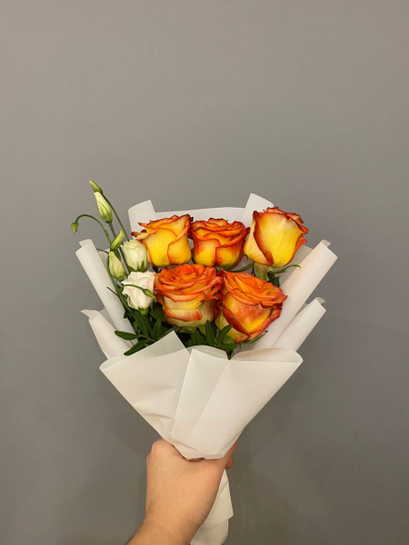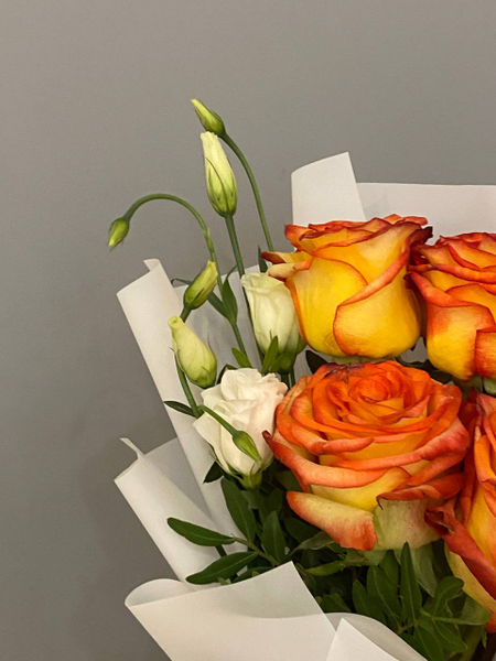 Букет с розой "Хай Мэджик" и эустомой