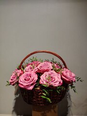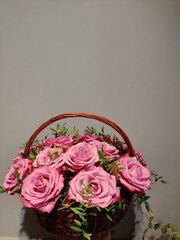 Композиция в корзине из роз "Муди Блюз" (15 шт)