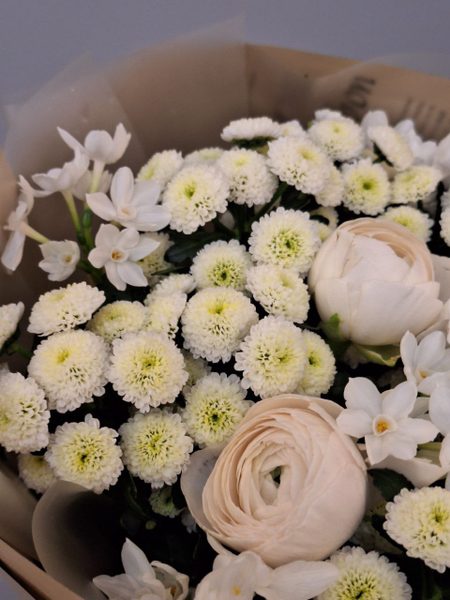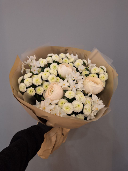 Весенний букет с ранункулюсами и нарциссами