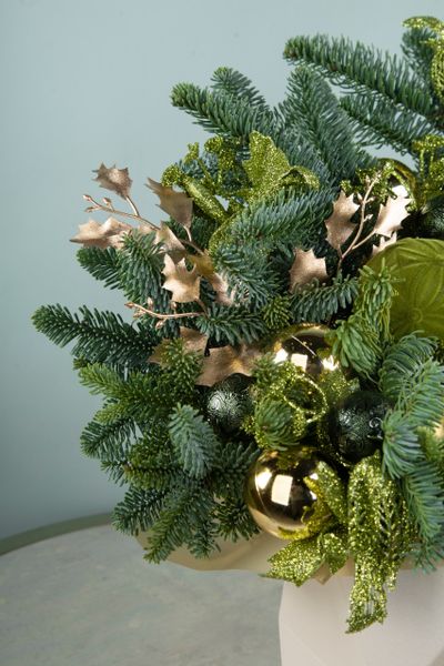 Создайте атмосферу праздничного шика с композицией «Новогодний гламур»! Золотые и зеленые оттенки подчеркнут элегантность вашего интерьера, добавят блеска и волшебства. Создайте идеальный акцент для семейных фото и уютных вечеров в кругу близких. Не пропустите шанс превратить свой дом в сказку уже сегодня!