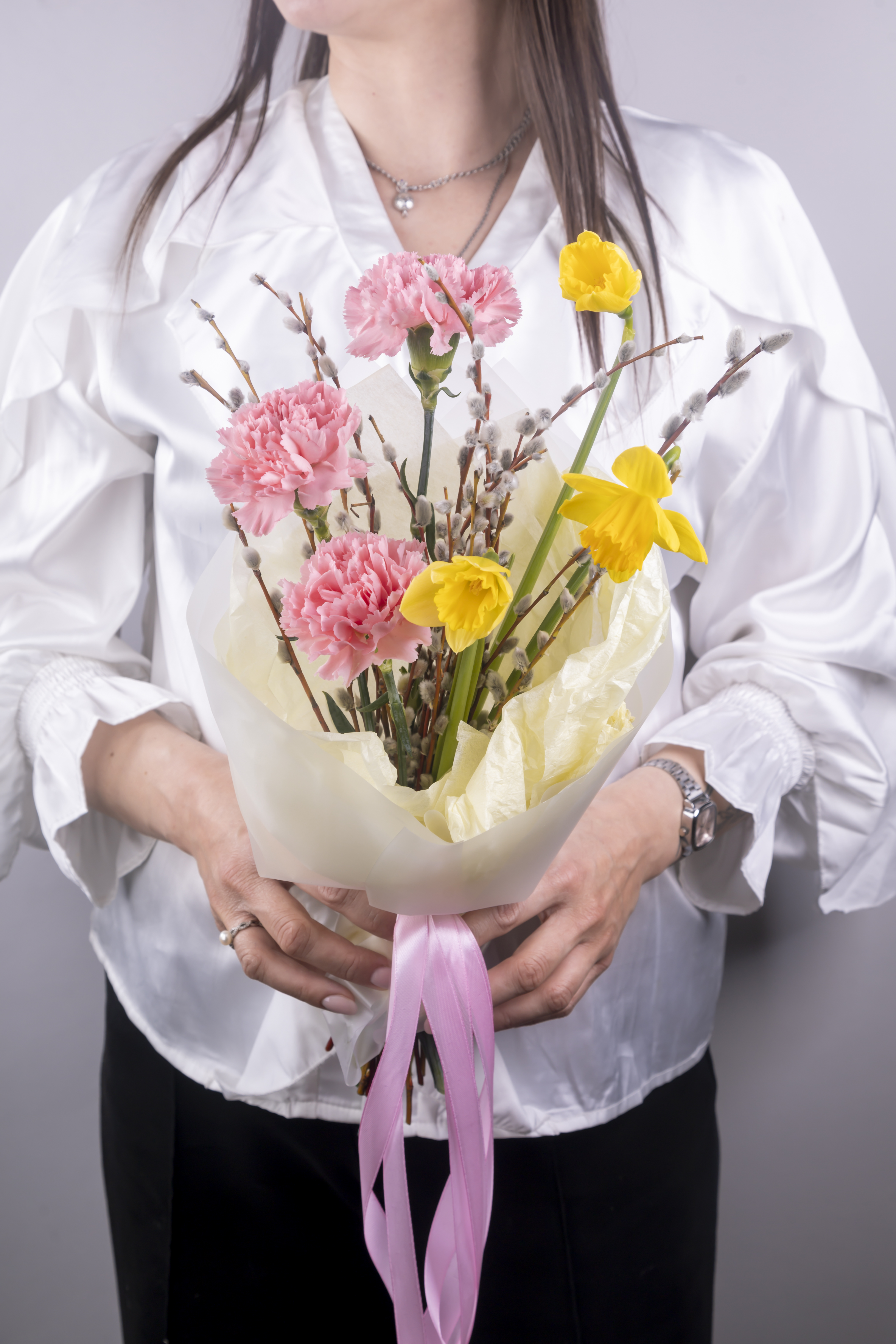 «Весеннее чудо» — букет, который наполнит ваш дом теплом весеннего солнца! Яркие цвета и нежные ароматы подарят радость вам и близким, создавая атмосферу праздника и уюта. Подарите близким весну уже сегодня с букетом «Весеннее чудо». Легко поднимают настроение, идеально подходят для праздников и без повода. Создайте мгновение счастья вместе с нами!