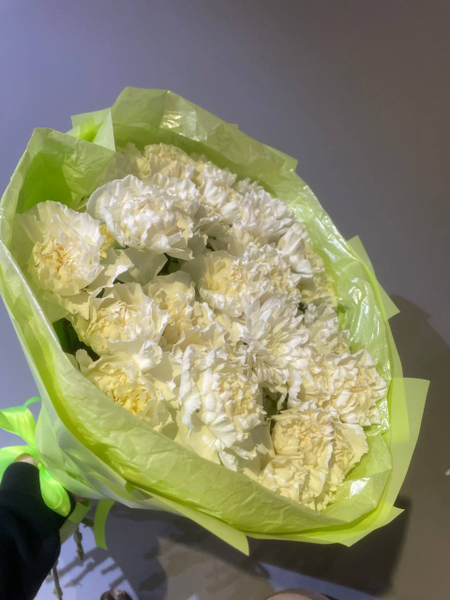 Букет из белой гвоздики и кустовой хризантемы