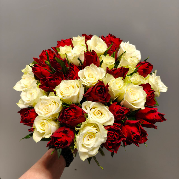 Букет из роз "Атена" и "Мадам Рэд" (51шт)