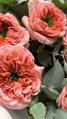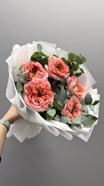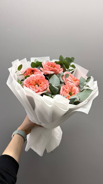 Букет из роз "Мандарин Экспрешн" с эвкалиптом ( 5 шт)