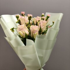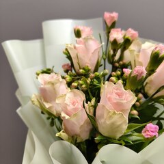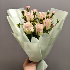 Букет-комплимент из роз "Пинк Атена" с каланхоэ