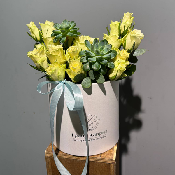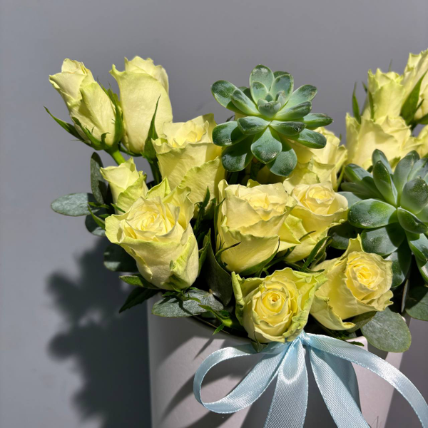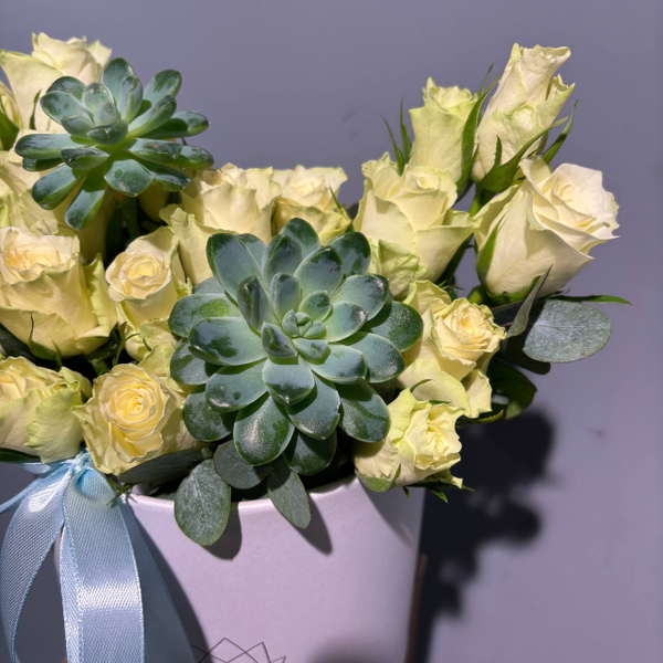 Композиция из роз 40 см с суккулентами