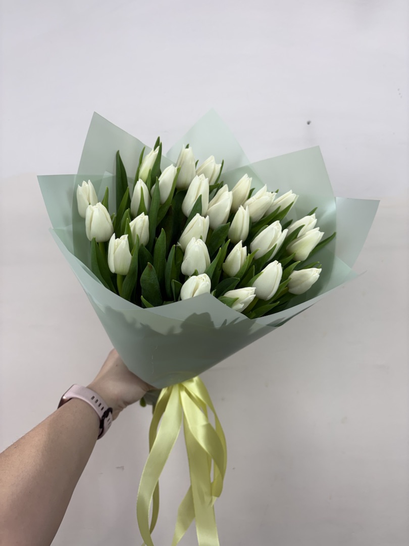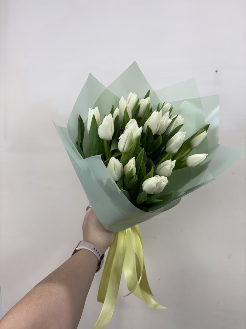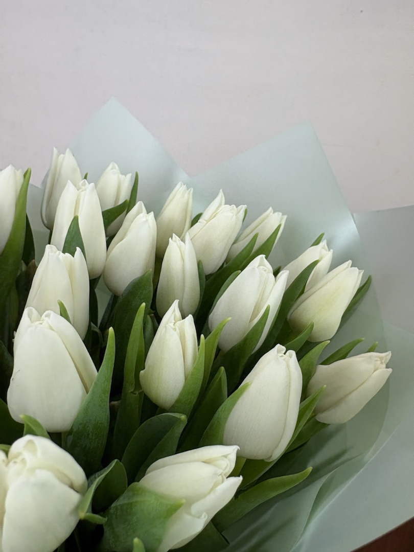 Букет тюльпанов «Роял Вирджин» — это элегантные белые тюльпаны в стильной упаковке. Они символизируют искренность чувств, нежную любовь и чистые намерения. Идеальный подарок для особого случая! Букет, который скажет больше слов, чем любые признания!
