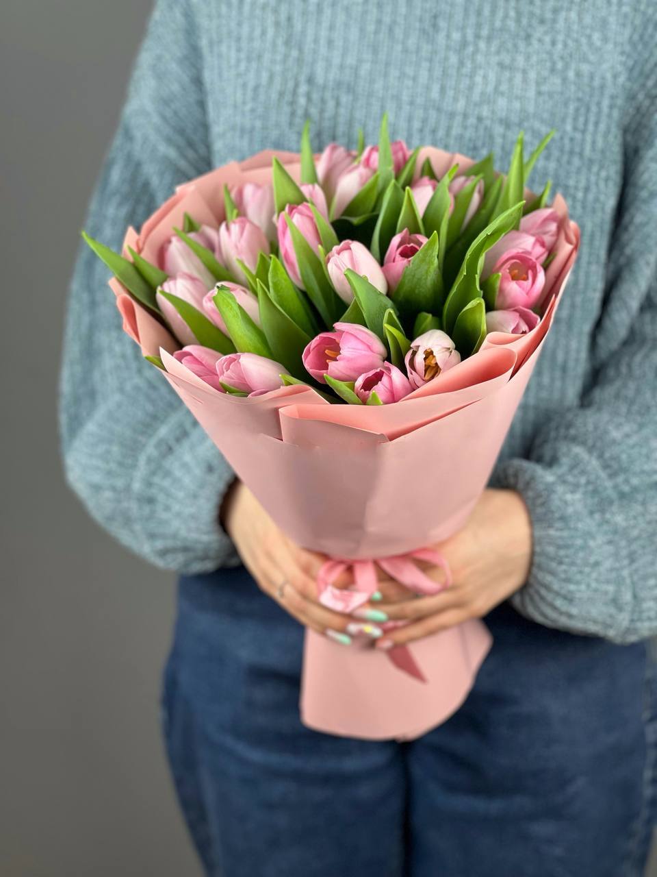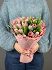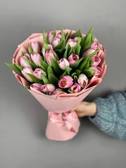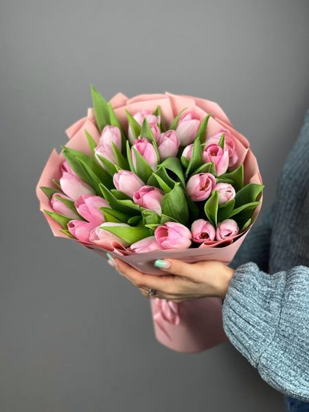 Букет из розовых тюльпанов - это прекрасный подарок для любого случая. Он символизирует нежность, любовь и заботу. Розовые тюльпаны идеально подходят для создания романтической атмосферы!