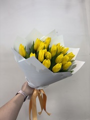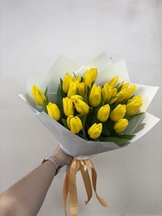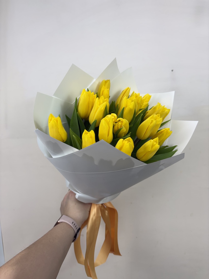 Яркий букет тюльпанов «Стронг Голд» — это море солнечных улыбок и позитивных эмоций! Яркие жёлтые тюльпаны подарят тепло даже зимой, наполнив дом уютом и радостью. Идеальный выбор для поздравления близких людей! Ваш идеальный подарок всего одним кликом заказа!
