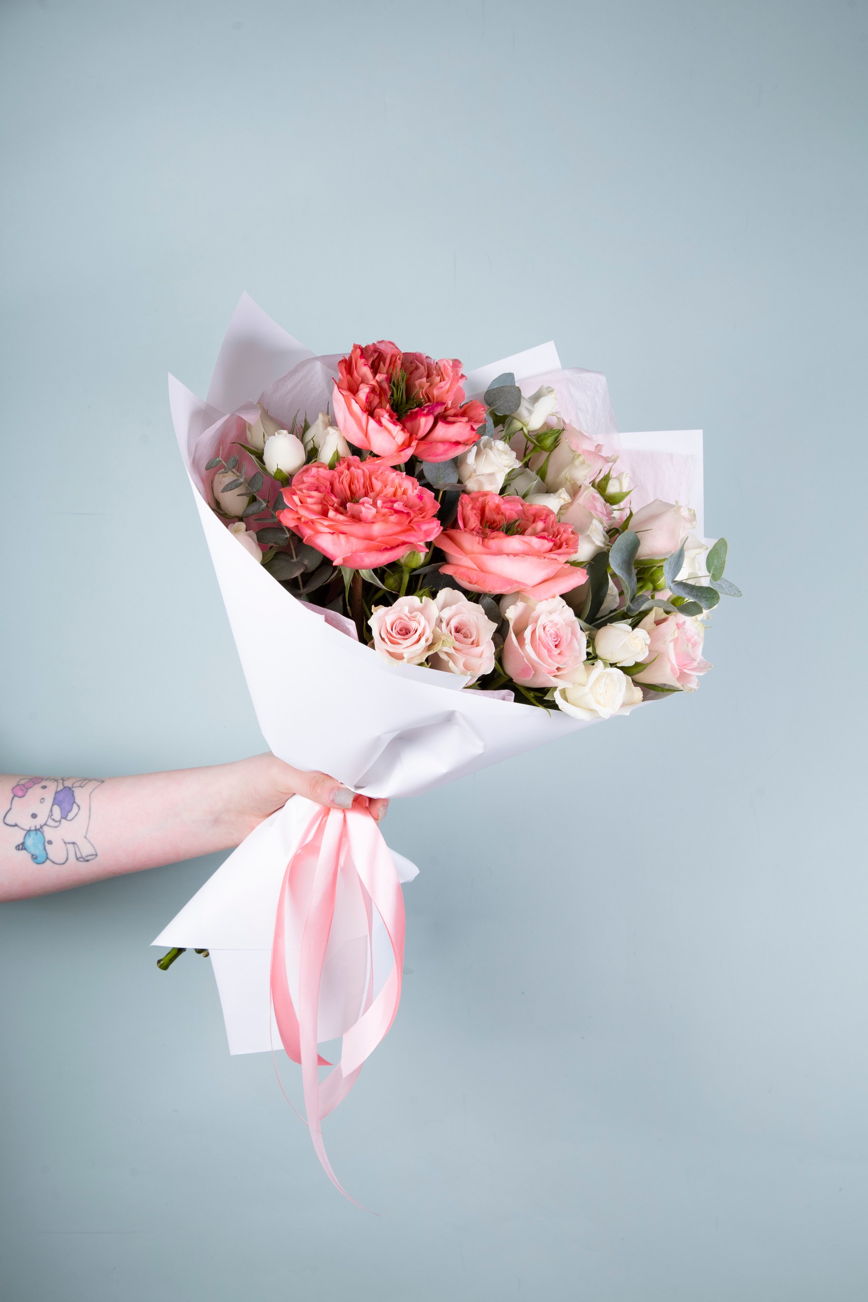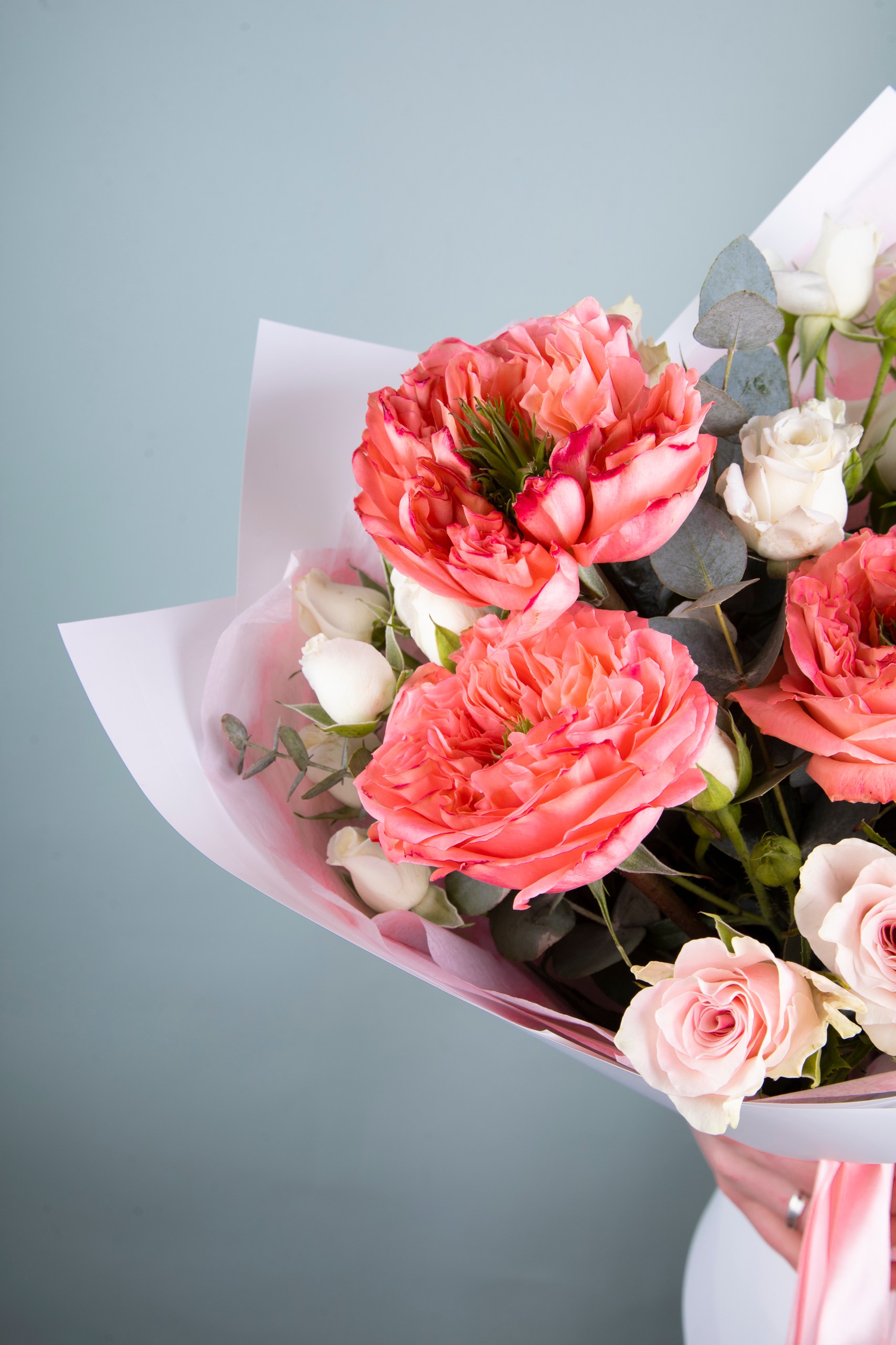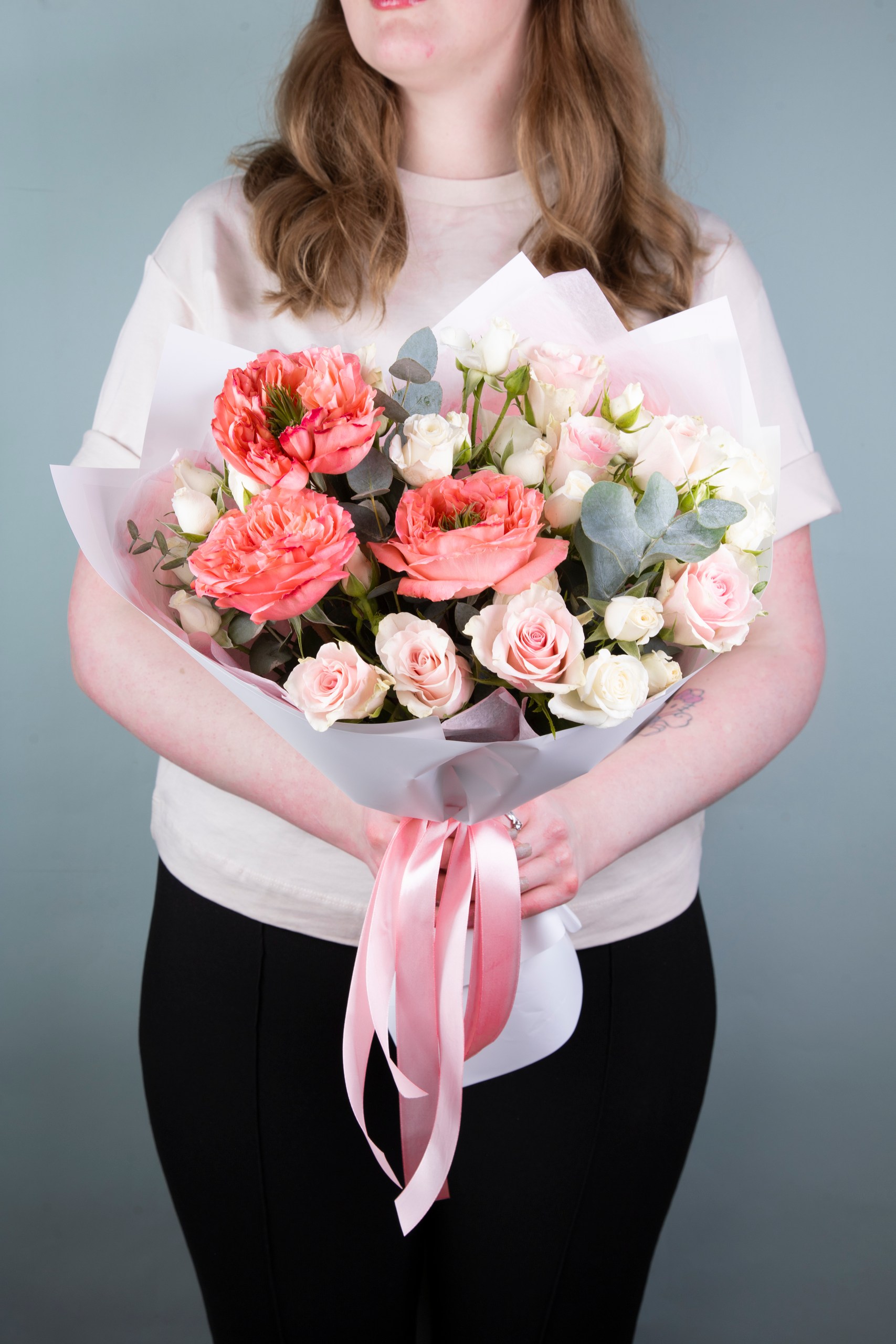 "Букет 'Ванильное небо' — воплощение нежности и романтики! Нежные пастельные тона цветов создают атмосферу легкости и счастья, наполняя дом теплом уюта. Подарите близким красоту и аромат цветов, который ассоциируется с комфортом и заботой. Это идеальный способ выразить свои чувства к любимому человеку, удивить друзей или поблагодарить коллегу." Такой букет всегда создает приятное впечатление и оставляет незабываемые воспоминания!"