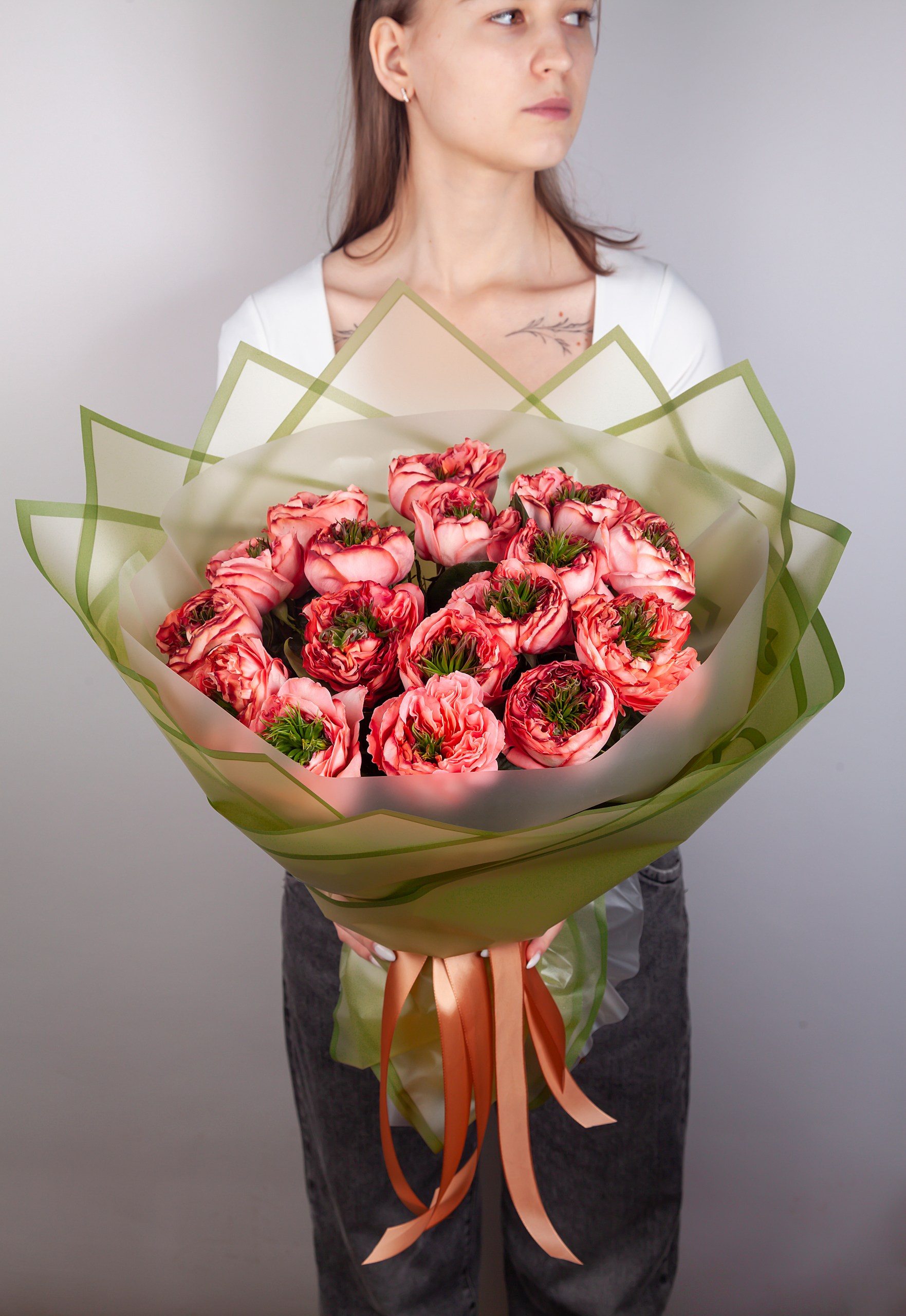 Откройте для себя изысканность букета из роз Мандарин Экспрешн — нежные пионовидные розы нежно-персикового оттенка подарят вашему дню яркие эмоции! Прекрасное решение как для романтического свидания, так и оригинального подарка по особому случаю. Подчеркните индивидуальность своего выбора и порадуйте близких уникальностью этого удивительного букета. Доставка свежести и очарования прямо к порогу заказчика!
